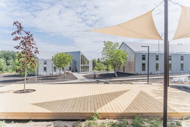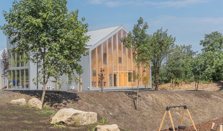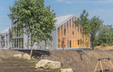 Центр матери и ребенка “Незламні матусі» располагается во Львове, Украина. Проект был реализован в 2022 году как центр помощи для беременных и матерей с маленькими детьми, которые нуждаются в приюте из-за военных действий в Украине. Проект реализован по технологии модульно-каркасного строительства.